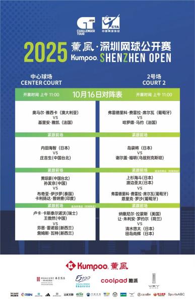 2025深圳网球公开赛暨国际职业男子网球挑战赛由职业网球联合会(ATP)与中国网球协会主办,深圳市文化广电旅游体育局支持,深圳市网球协会与华建体育产业(深圳)有限公司承办,深圳市体育产业集团、深圳市网羽中心运营管理有限公司、深圳金证文体科技有限公司与深圳市华力文体有限责任公司共同协办。