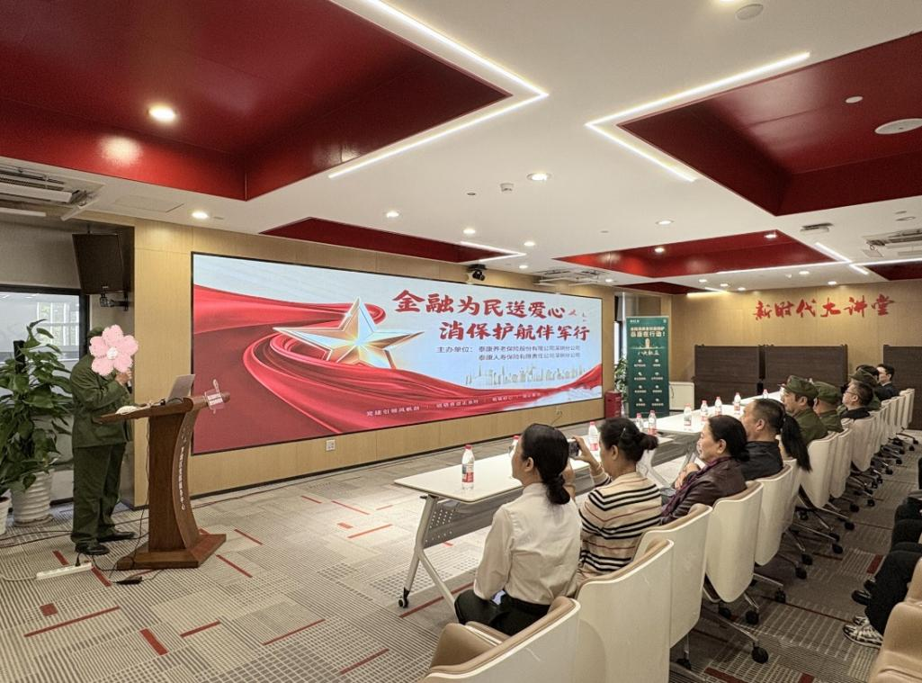 2026年1月26日,借助腊八节契机,泰康人寿深圳分公司与泰康养老深圳分公司党委及青骑兵队伍携手走进深圳市罗湖区党群服务中心,开展“金融为民送爱心,消保护航伴军行”退役军人慰问暨金融知识教育宣传活动。本次活动通过现场讲座向退役军人普及金融消保知识,通过智能健康设备检测关心退役军人身体健康,通过送上年货慰问品向退役军人献上最崇高敬意和新年祝福。