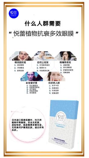 人美不如脸美,脸美不如眼美,眼睛是心灵之窗,但是也会泄漏你的年龄,人老先老脸,脸老先老眼。一般自25岁以后眼周肌肤就开始走下坡路,出现黑眼圈、鱼尾纹、眼袋、肉芽、浮肿等问题。所以,预防和护理是十分重要的。在护肤品中,眼膜是最有效的眼部护肤品。面对市面上多如牛毛的眼膜品牌,哪一款才是最好用的?小编向大家推荐悦蕾植物抗衰多效眼膜!